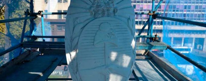 “Los pilastros donde van las esculturas, que en su momento estaban bien hechos, tenían los goterones para que decantara el agua. Descubrimos que en la restauración anterior los habían tapado y eso provocaba humedad, que no solo venía de los cimientos”, indicó Marta Zaffora, restauradora a cargo del proyecto. Además, comentó que “en distintos lugares de la parte baja de la pirámide tuvimos que rehacer las molduras decorativas con un mortero especial símil piedra que desarrolló Tarquini, para lo cual contamos con la asistencia técnica de la Ingeniera Claudia Arce”.
