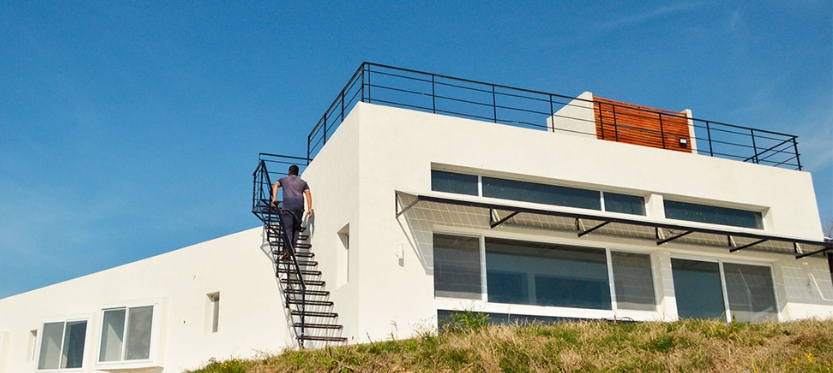 Gracias a su arquitectura bioclimática, produce su propia energía, recolecta el agua de lluvia para sus instalaciones y tiene altos niveles de eficiencia. Una diversidad de estrategias la convierten en una vivienda 100% sustentable.