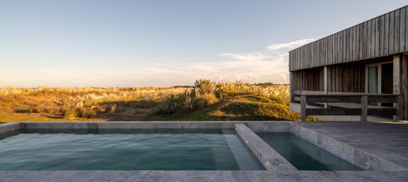 Situada donde la pampa se encuentra con el mar, la Casa Lobos se eleva sobre el médano para permitir el flujo natural del viento y obtener vistas panorámicas hacia el paisaje. Diseñada como un espacio de encuentro familiar, ofrece un área común pasante con vistas al campo y al océano. La galería al oeste permite contemplar el campo y las puestas de sol, mientras que la terraza al este, con su piscina, ofrece vistas al mar y sus amaneceres. Cuatro dormitorios en suite, cada uno con su balcón, observan el océano.
