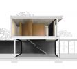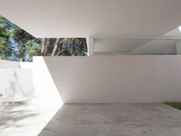 El programa de usos se desarrolla en dos plantas, una planta baja que aloja Living, comedor, cocina y un sector de uso social que remata en un estudio, solárium y pileta. La planta se extiende en forma de L cerrándose hacia la calle y los linderos. Se abre al corazón del barrio repleto de arboles añosos y de grandes espacios verdes destinados a la práctica de deportes. La planta alta es compacta y aloja los dormitorios. La habitación principal cuenta con una gran expansión que permite una excelente vista del paisaje.