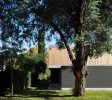 En planta baja, una envolvente muraria protege y da privacidad a los ambientes interiores y a un patio. Este conforma una expansión contenida del living y sirve como fuelle en relación a la calle. El living cuenta además con otra expansión hacia el jardín. El sector social expande naturalmente a un solárium de proporciones análogas. Esta apertura se da a través de ventanas de PVC de Aberturas San José.