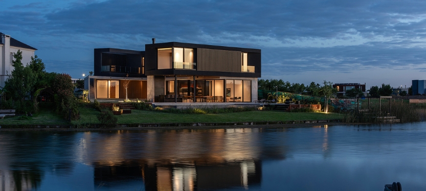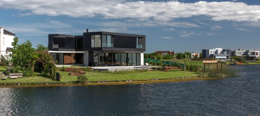 Casa Muelles se encuentra ubicada en un barrio cerrado de las afueras de Buenos Aires. La misma se implanta en un lote con forma de abanico, y se apoya sobre el lado sur del terreno, debido a que se buscó garantizar asoleamiento desde el norte y las mejores visuales posibles hacia una de las lagunas del barrio.