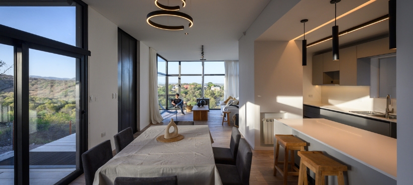 La casa resuena en armonía con la naturaleza, celebra la belleza del entorno y la habilidad humana para integrarse con gracia y respeto en el lienzo natural que la rodea.