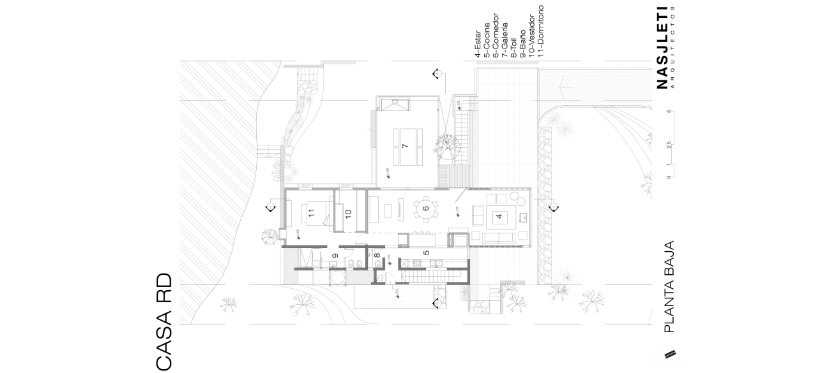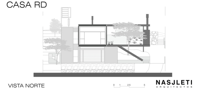 Un respeto profundo por la naturaleza y su biodiversidad ha sido la brújula de cada decisión proyectual. Casa RD se enclava en el tercio medio del lote para aprovechar todas sus bondades: la vista, la vegetación, el asoleamiento y el viento. Se ha buscado no solo construir una casa, sino integrarla de manera armoniosa en el tejido mismo de la topografía. Así, se aprovechó cada ondulación del terreno para crear múltiples experiencias en espacios exteriores con características diferentes.