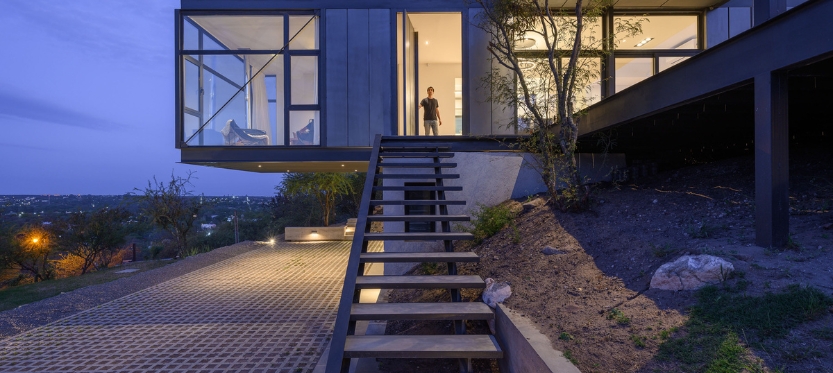 Casa RD se encuentra implantada en las Sierras Chicas de la provincia de Córdoba, Argentina; en un terreno rodeado por la majestuosidad del monte nativo y dotado de una pendiente imponente.
