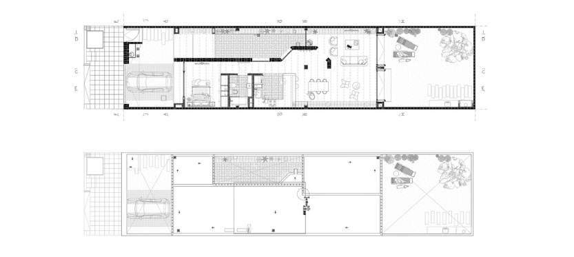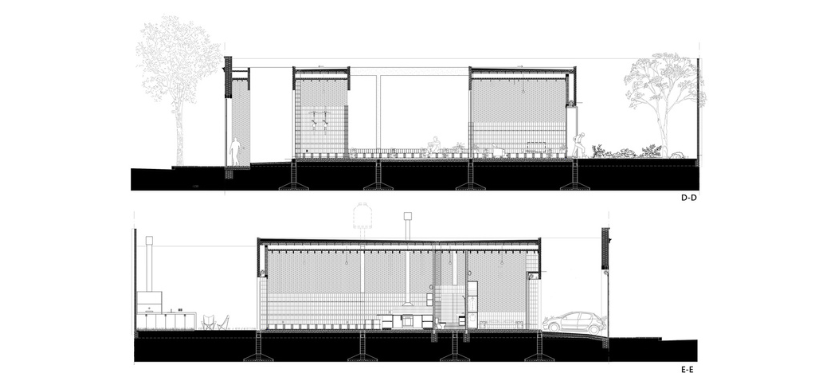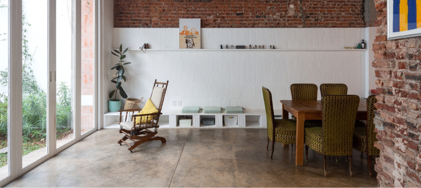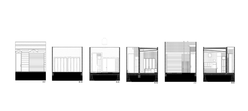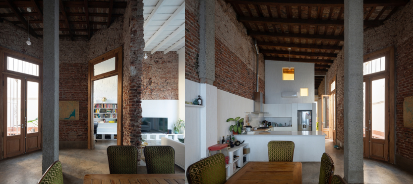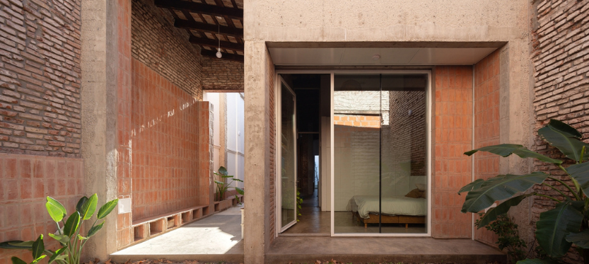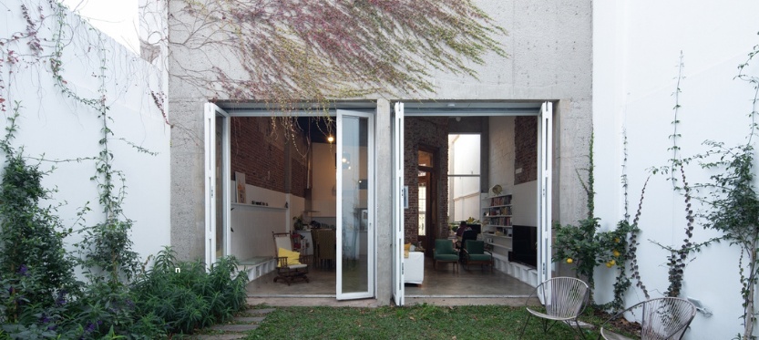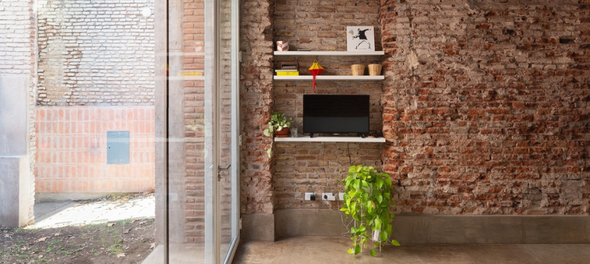 La primera intervención consiste en recuperar el aire, con lo cual se plantean una serie de demoliciones al fondo y adelante de manera que queden conformados 3 patios. Se conserva el sector más antiguo de la construcción original y se dejan a la vista las viejas paredes y techos de ladrillos.