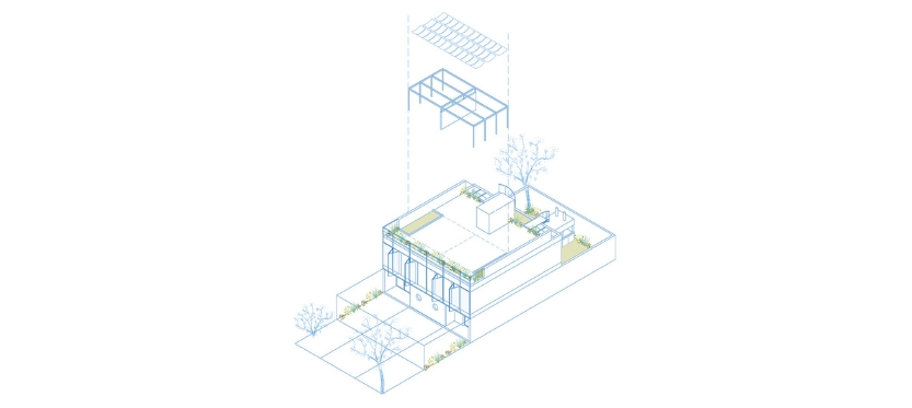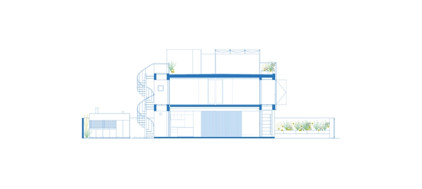 Las especies vegetales preexistentes del terreno fueron preservadas y reincorporadas en la cota superior de su hábitat original en el nivel de terraza. Aquello generó un nuevo paisaje en altura y un límite vivo que actúa como tamiz. La operación deviene así en una transformación del paisaje a partir de la aparición de nuevas especies de seres vivos que se ven atraídos, con la posibilidad de crear nuevas formas de vínculo con la naturaleza en contextos urbanos. Es así que el proyecto actúa como un dispositivo activador del ecosistema, con la voluntad de construir nuevos escenarios de convivencia con otros organismos vivos como parte de la trama ecosistémica de la cual somos parte. El edificio pretende así ser hábitat no solo del ser humano, sino también de especies animales, vegetales y otros organismos vivos.