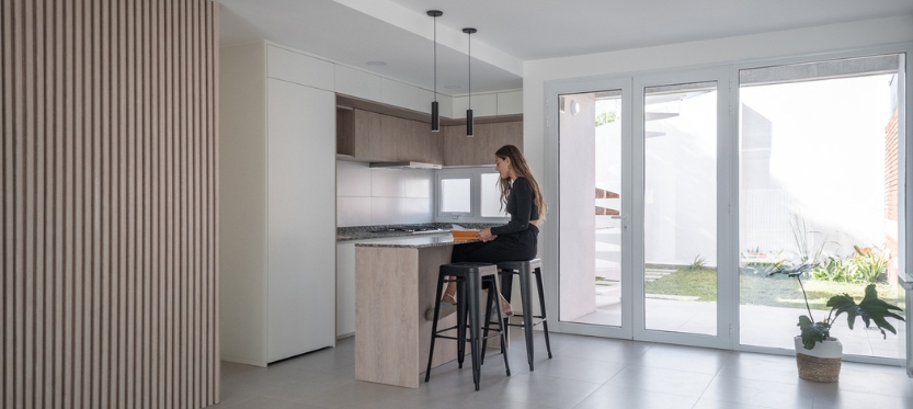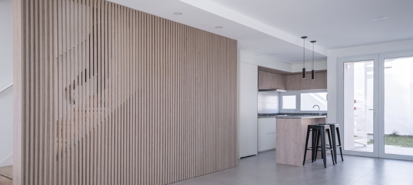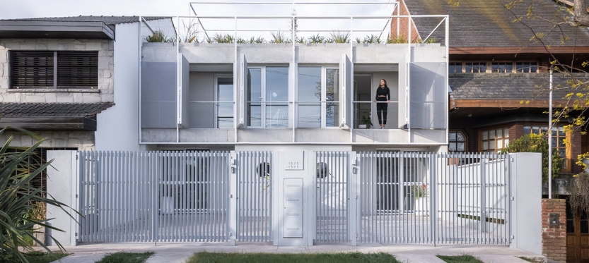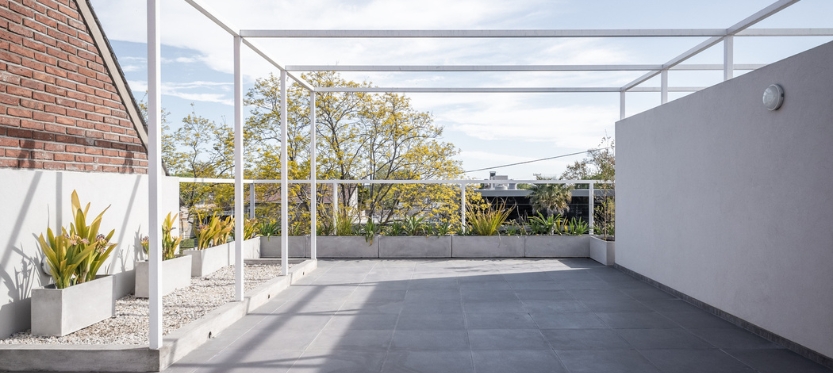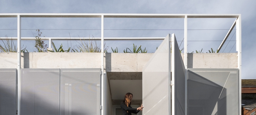Esta relación se compone generando un tamiz gradual que varía de opaco a traslúcido en función de la perspectiva y el movimiento de quien circula, en una transición entre la ciudad y el espacio doméstico. En síntesis, repensar las formas de vínculo con el medio ambiente y la construcción de nuevos escenarios de convivencia más amables con las diversidades que conforman la trama ecosistémica de la cual el ser humano es parte; la vigencia de la vivienda a lo largo del tiempo a través de la definición de estrategias de flexibilidad que admitan las transformaciones del habitar y la exploración del límite en términos tecnológicos-espaciales, fueron algunas de las inquietudes y ejes teóricos que se convirtieron en semilla fértil para la generación del proyecto, plasmándose y haciéndose presentes en la materialización de la obra.