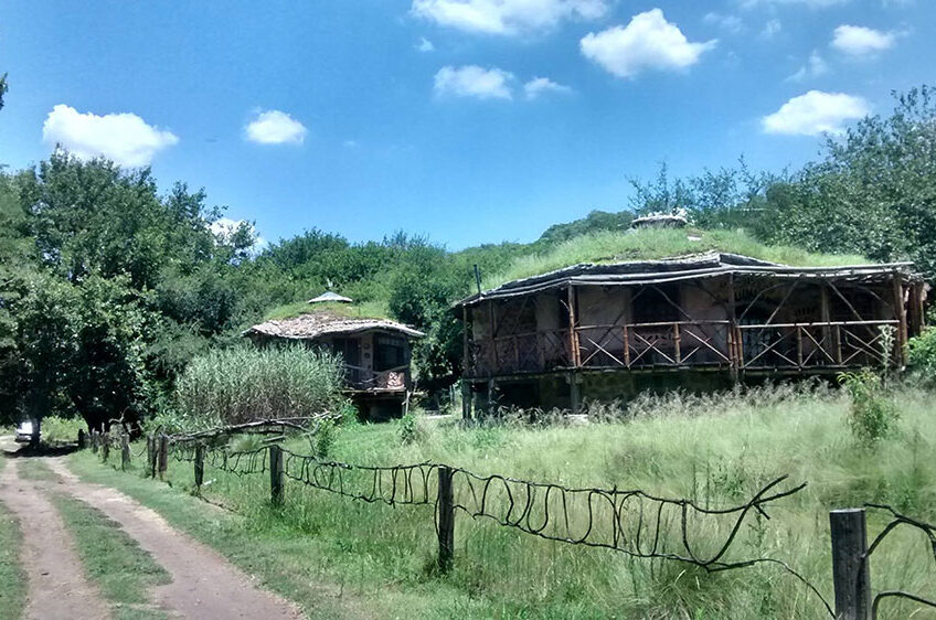 Bioconstrucción de ladrillo crudo o adobe con aislamiento térmico que supera ampliamente a los mampuestos comúnmente empleados. El techo “cascara” otorga el máximo de resistencia con un mínimo de material.