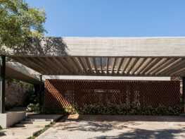 En el centro de un terreno de 190 m2, un árbol de mango intermedia entre los dos bloques que se separan físicamente, pero se conectan visualmente, logrando una integración espacial desde el muro filtro del frente hasta el muro lindero del fondo. Un espacio construido de 115 m2, que se transforma mediante filtros, puertas y persianas, responde al existenzminimum bajo una perspectiva local, subtropical.