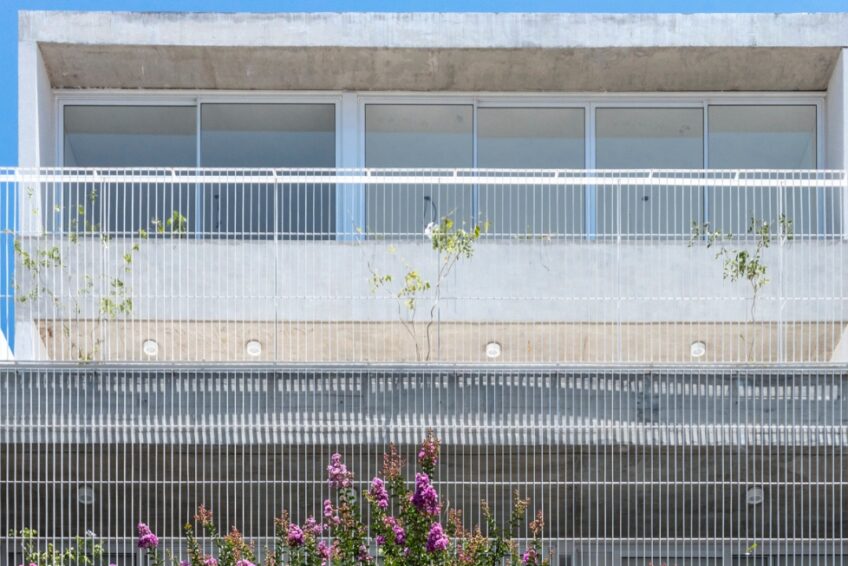 La fachada hacia el frente se propone como un filtro con la misma materialidad. De esta forma, permite que la expansión de las unidades sea corrida, y asuma múltiples usos, agregándole un gradiente a la relación exterior / interior.