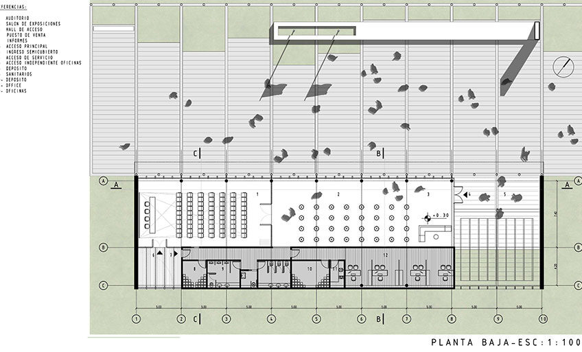 maximizando la relación exterior-interior entre las funciones principales del mismo: auditorio y salón de exposiciones y el nuevo espacio público.