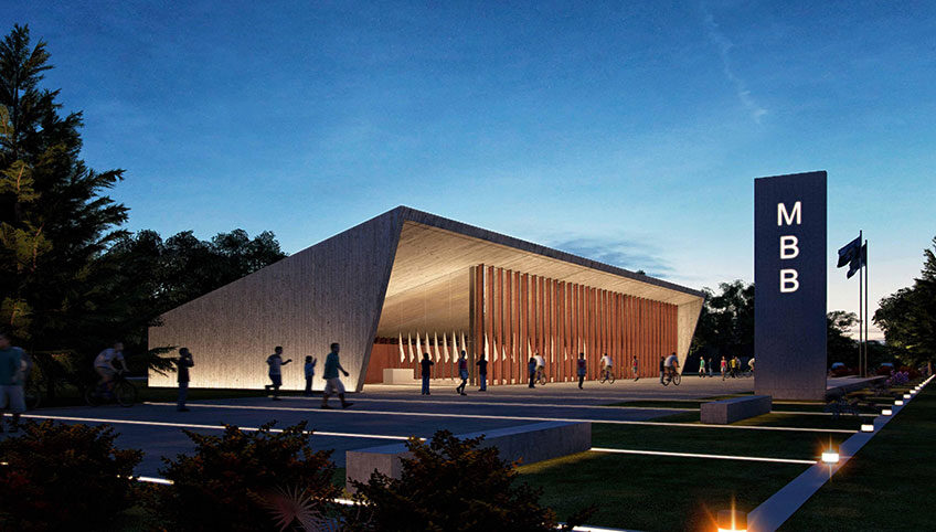 El Monumento a la Bandera Bonarense se desarrolla enfatizando el eje de la Av.San Martín, arteria de conexión entre dicho acceso y el centro de la Ciudad, a partir de una pieza multiprogramática, ubicada en el lugar que hoy ocupa dicha