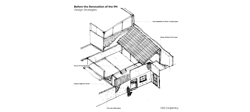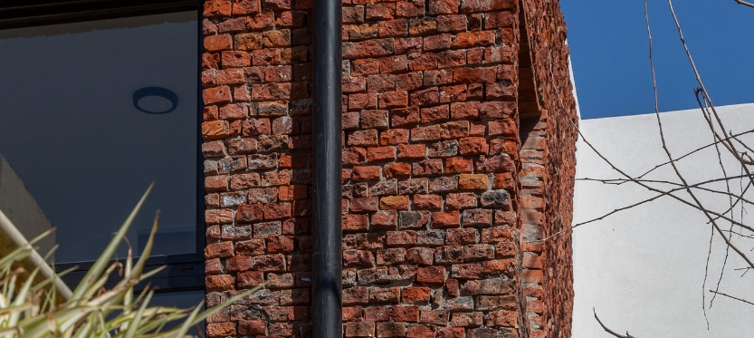 El lenguaje del PH remite a los antiguos muros de ladrillo que lo componían, generando una solución constructiva estética contundente y una realidad material que se muestra en su calidad estereotómica más genuina. La simple condición de apilar mampuestos, ayudó a crear una envolvente rugosa de color pregnante, liberando el interior a un liso color blanco. A esta condición de diseño la llamamos “paradigma del coco” y opera en una dialéctica constante de contrastes sensoriales y de diferencias temporales. De esta manera, integramos la preexistencia como germen de lo nuevo, la reinterpretación y la relectura como una herramienta indispensable de diseño.