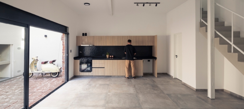 El desafío fue transformar completamente el antiguo PH, que funcionaba como carpintería. Modificar la estructura original (recintos oscuros) por espacios llenos de luz que dieran a un gran vacío, un patio longitudinal desde una impronta contemporánea y acogedora.