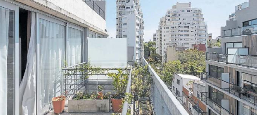 Buenos Aires es una ciudad con la mayoría de sus días de clima templado, por lo cual los espacios semi-cubiertos son un tercer espacio habitable. Detrás de una fachada verde, se proyectó para todas las unidades una gran terraza que posibilita la integración o división de los ambientes adaptando el espacio al estilo de vida de quien lo habita.