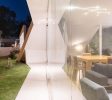 Se decide recostar la construcción sobre el eje medianero mayor para preservar la vegetación existente. Mediante un trabajo paisajístico y de movimiento de terreno que sirve en primer instancia como filtro en el contacto de la vivienda con la calle, se genera en este patio delantero una atmósfera armónica, a la que se direccionará la apertura de todos los espacios interiores.