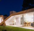 La casa X se encuadra entonces, en dos cintas que estructuran los planos superior e inferior. La primera, que emerge del suelo es piso de espacios sociales y pliega convirtiéndose en cubierta de las áreas privadas, mantiene en dormitorios y baños la misma altura. La segunda forma el solado de la zona de dormitorios y se convierte en techo de cocina, estar y comedor, extendiéndose en una galería con asador, y presenta un gesto de inclinación en dos sentidos (longitudinal y hacia el fondo de la construcción) que aumenta y prioriza el ángulo de visuales desde el área social al exterior.