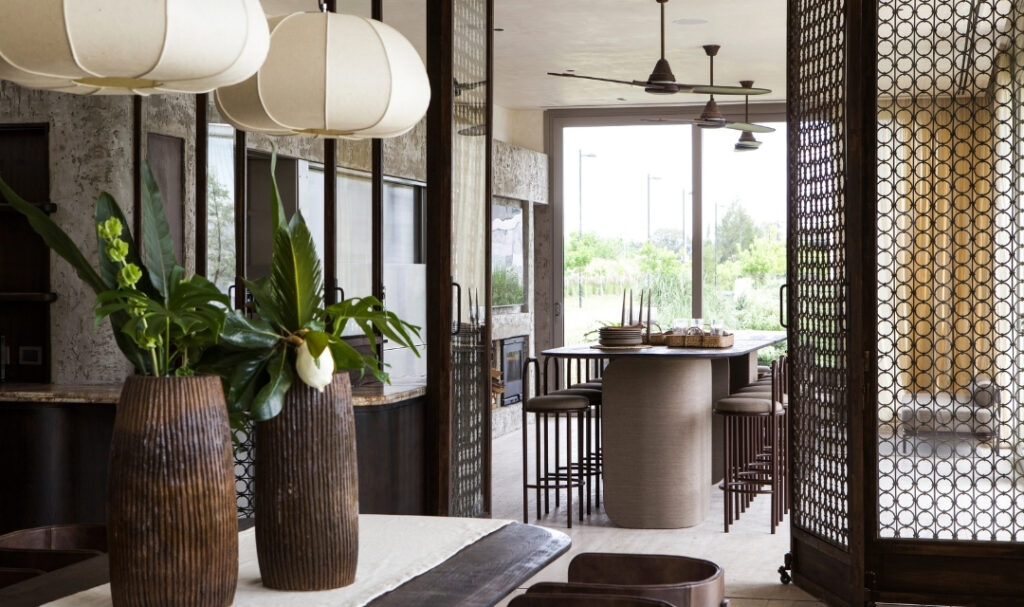 En este juego de contrastes, las aberturas en PVC MUCHTEK, fabricadas por Duxon PVC, cumplen un rol central. Amplias visuales permiten que cada ambiente de la casa mantenga una conexión directa —física y visual— con el exterior y con el proyecto paisajístico que rodea la vivienda.
